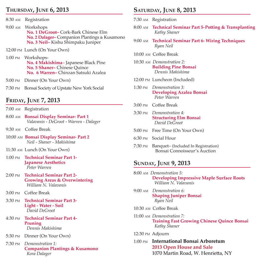 Don’t delay in registering for this special and limited event, click here to visit our REGISTRATION PAGE or contact: William N. Valavanis WNV@internationalbonsai.com - Phone (585) 334-2595