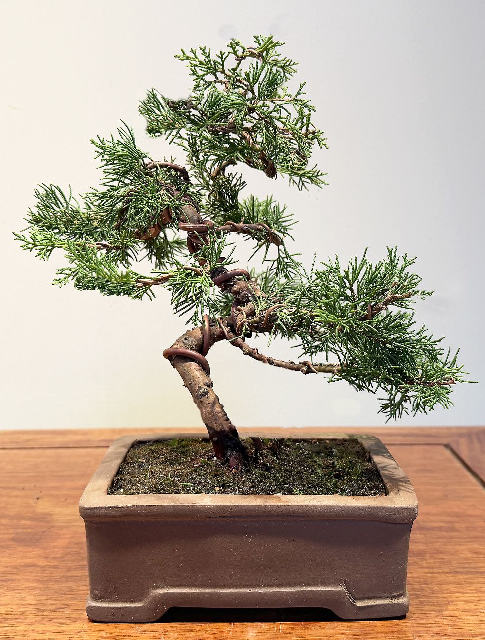 Juniperus chinensis ‘Shimpaku Itoigawa’ Sargent juniper, also called Shimpaku juniper, is a favorite among bonsai artists from beginners to master artist because they don’t have a natural growth form and can be shaped into any form. The evergreen, bright-green foliage of the Itoigawa sargent juniper is more delicate and refined than the common Sargent juniper. They are quick to develop and easy to maintain. The trunks and branches have already been shaped by wiring, (without wire scars,) can withstand quite a bit of bending into extreme as well as delicate forms. These bushy specimens have plenty of options for shaping. Started from cuttings and completely container-grown to ensure health. These choice plants are great for workshops! Great for club workshops. Pre-bonsai– 2 gal, curved trunks & branches 12-16” $125 Free Shipping!