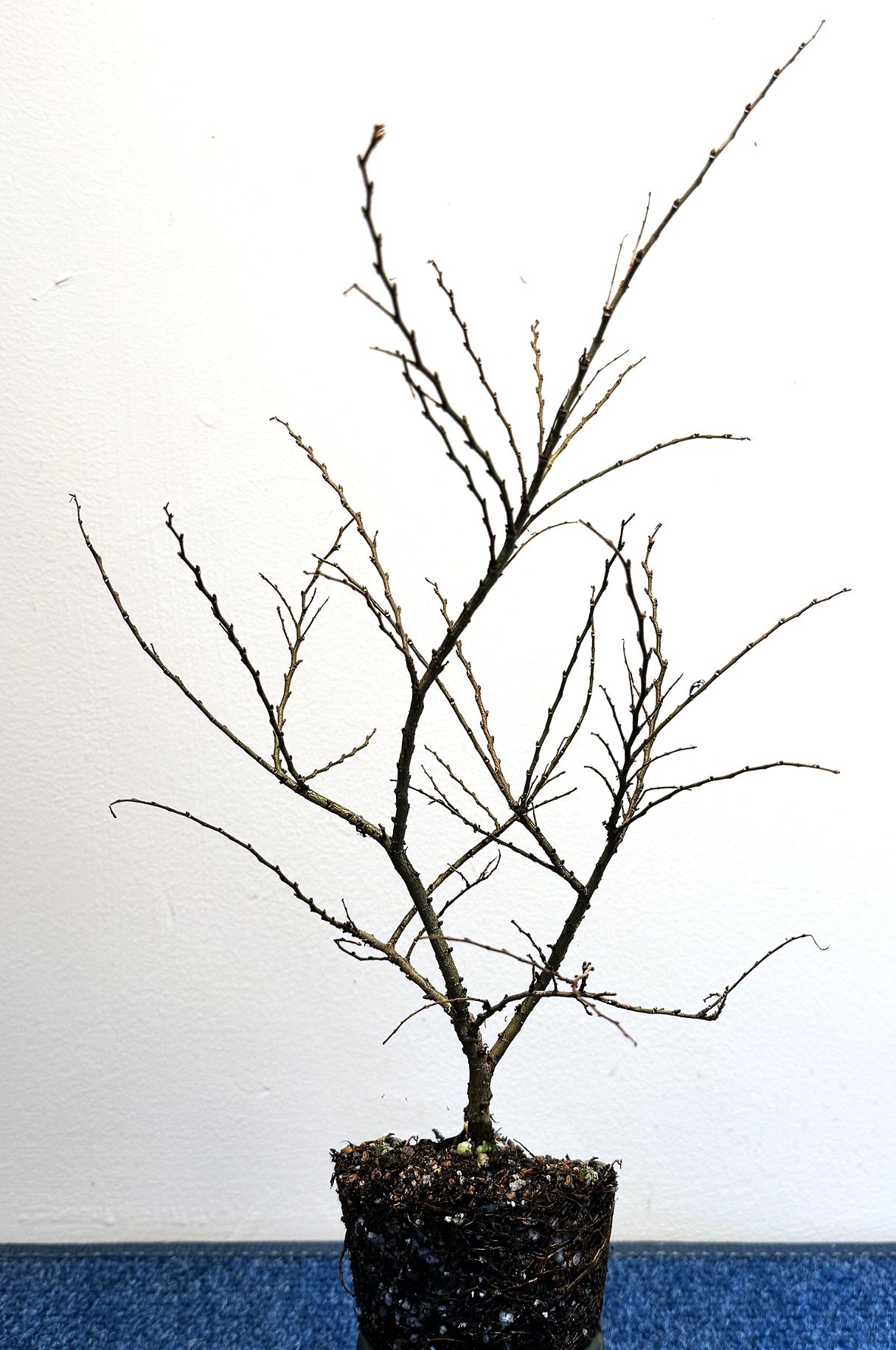 Fagus sylvatica European Beech are a beautiful species primarily grown for their white bark, long buds and fine twigs. The dark green leaves turn bright yellow and stems beginning to branch. Trunks become white in about six years. They often have smaller foliage than Japanese beech. Train a forest or single tree with beautiful bark! Potted Forest not available at this time! Click on smaller images to see development of a forest! 03/2014 03/2018 03/2023 European Beech